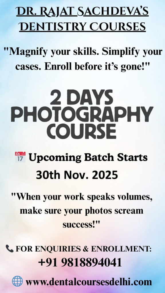 Calling all dentists and dental wizards! Get ready to snap your way to dental photography greatness with this hands-on course that’s all about practical demos! You’ll not only master the art of capturing those dazzling dental smiles but also get the lowdown on the must-have gear to make your photos pop like never before.