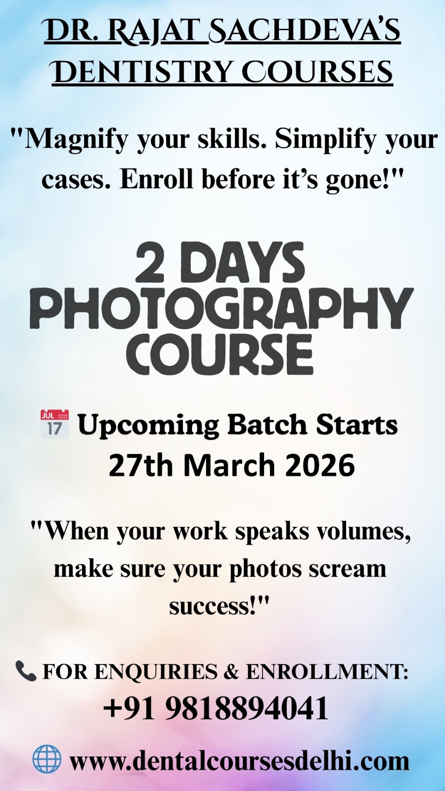 - Tailored for Busy Dentists: This program is ideal for dentists with demanding schedules who wish to maximize the benefits of dental photography.