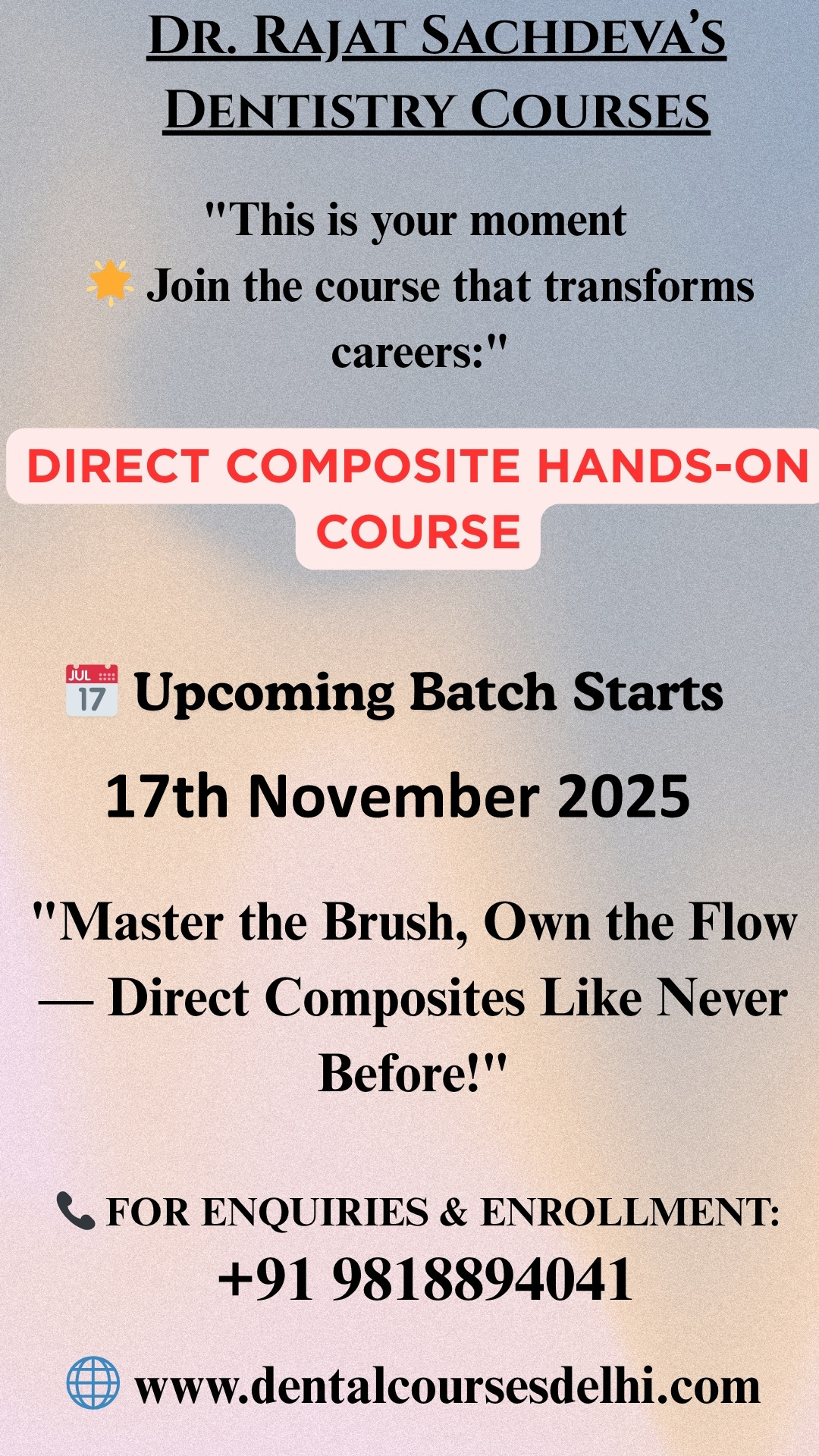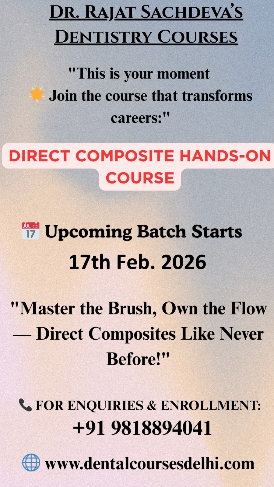 This course is tailored for dentists seeking to perform composite restorations with a high likelihood of success while minimizing complications. Emphasizing the clinical necessity of restoring the health and function of teeth through composite materials, the program includes comprehensive coverage of technical aspects through hands-on practice and live demonstrations.
