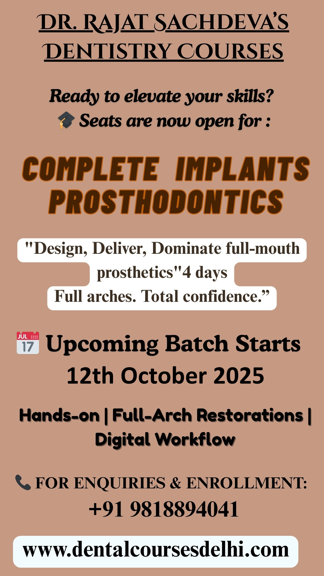 Joining Dr. Rajat Sachdeva’s Complete Implant Prosthodontic Course has been one of the most valuable investments in my professional growth. The program offered exhaustive scientific knowledge in prosthetic rehabilitation — from restoring a single implant to managing full-mouth cases with precision and predictability.