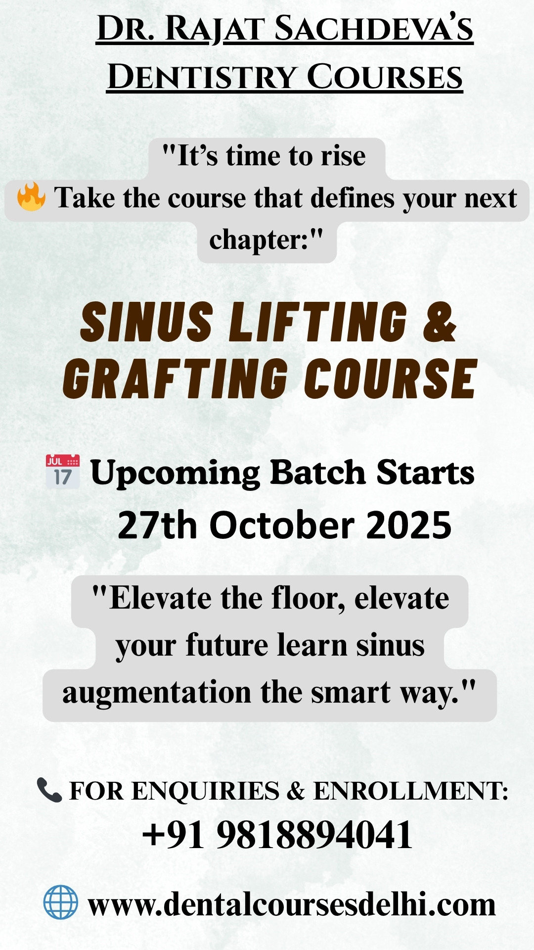 Dr. Rajat’s Dental Institute presents to you a comprehensive course on Sinus lift called the “Osseopreservation” .