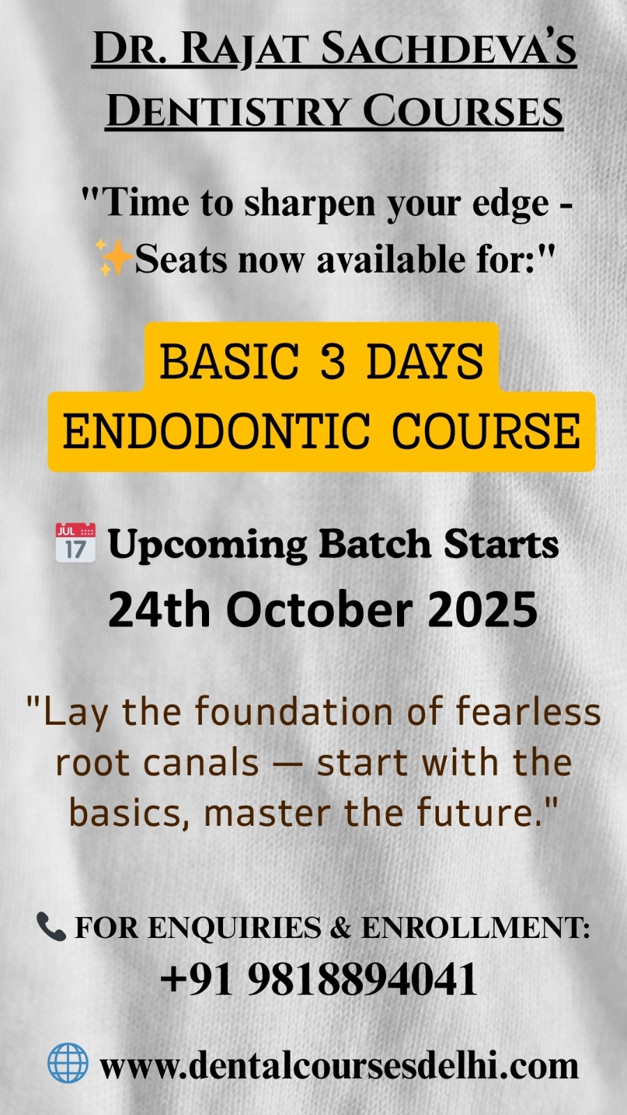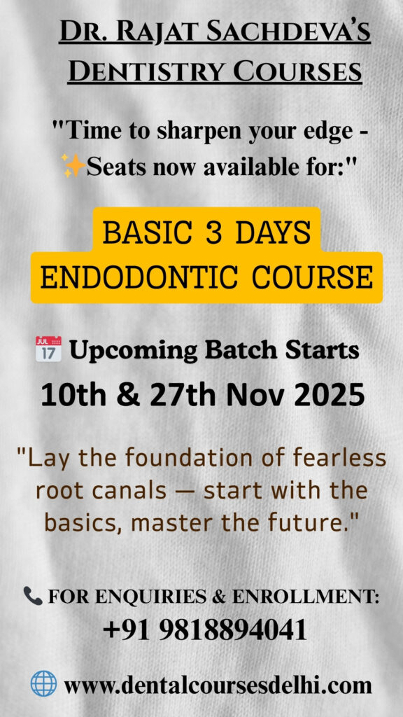 I recently had the opportunity to complete the Basic Endodontic Course at Dr. Rajat Sachdeva’s Dentistry, and it proved to be an outstanding blend of clinical exposure, modern techniques, and hands-on practice.