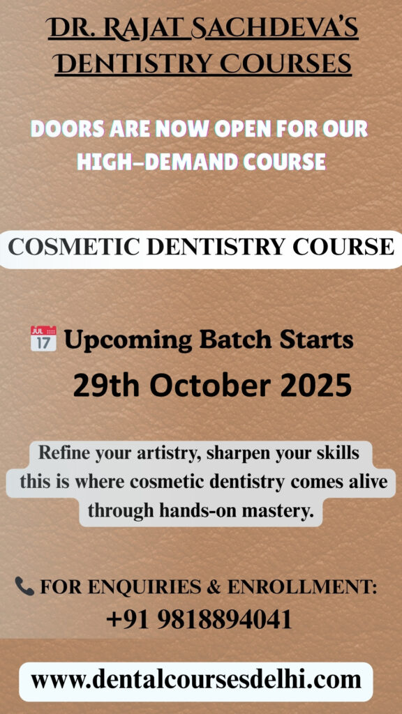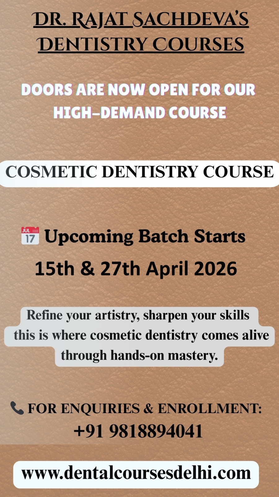 Dr.Sachdeva Dental Institute’s certified programme in Aesthetic Dentistry provides the General Dental Practitioner with an educational route to acquire the skills and knowledge required of a Dentist with special interest in the growing art of cosmetic dentistry.