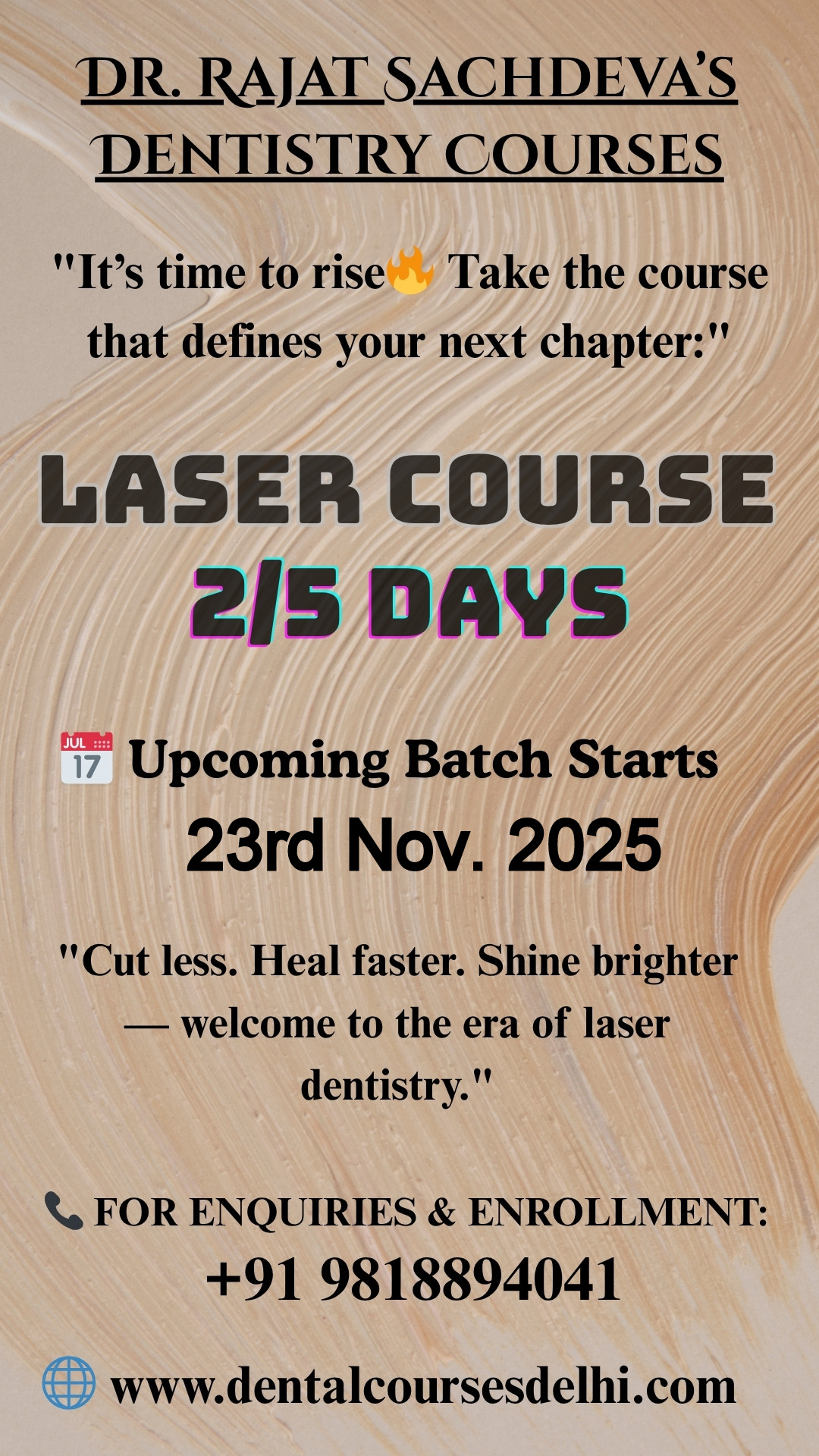 - Advanced Clinical Applications with soft tissue Laser Live Demo & Hands on