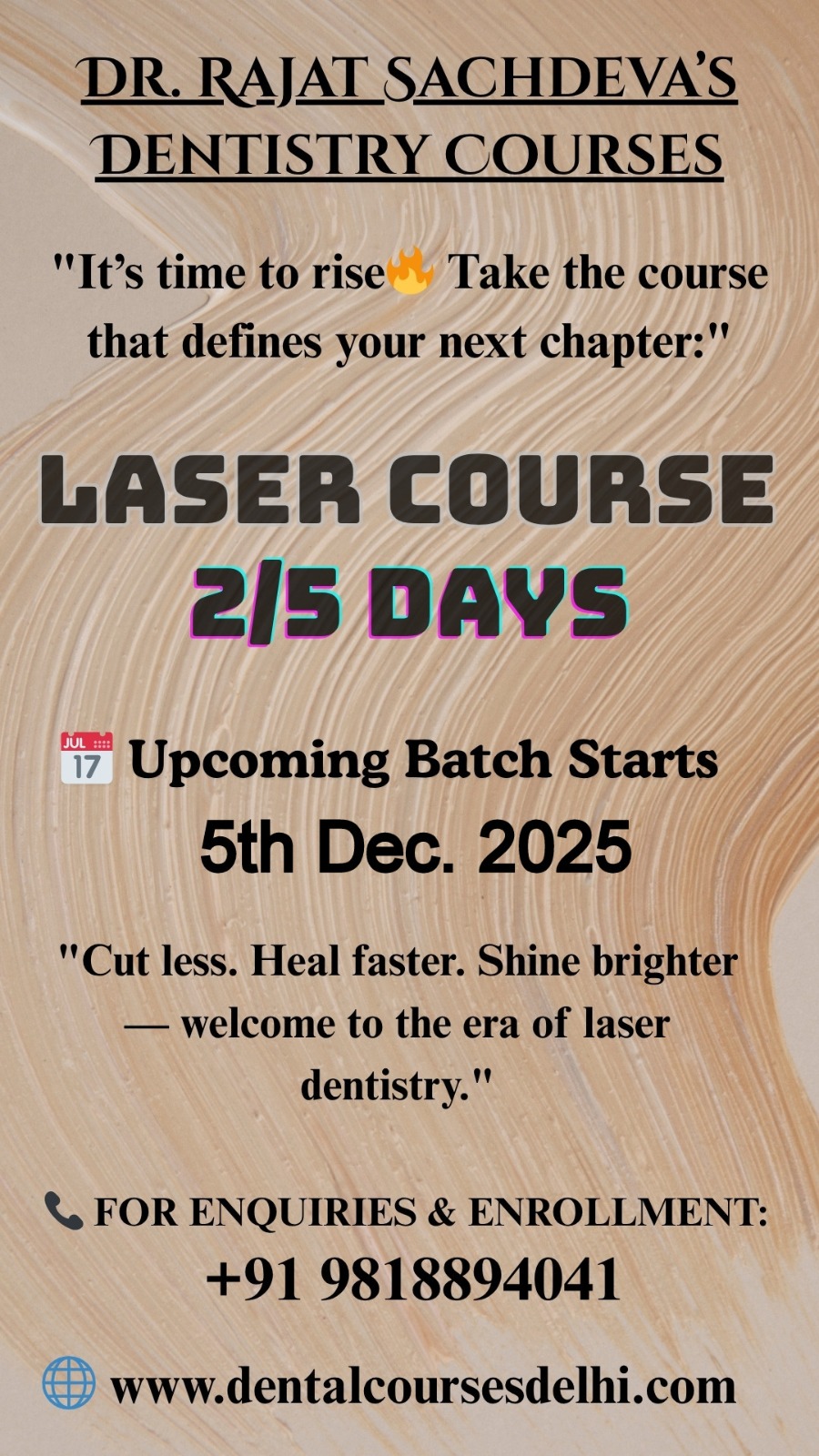 - For fresh dental graduates who would like to set up a laser dental practice.