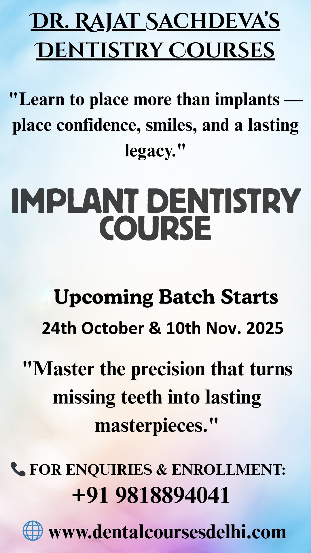 I recently completed my Master Clinical Implant Training at Dr. Rajat Sachdeva’s Dentistry, and I can confidently say it has been one of the most enriching experiences of my professional career.
