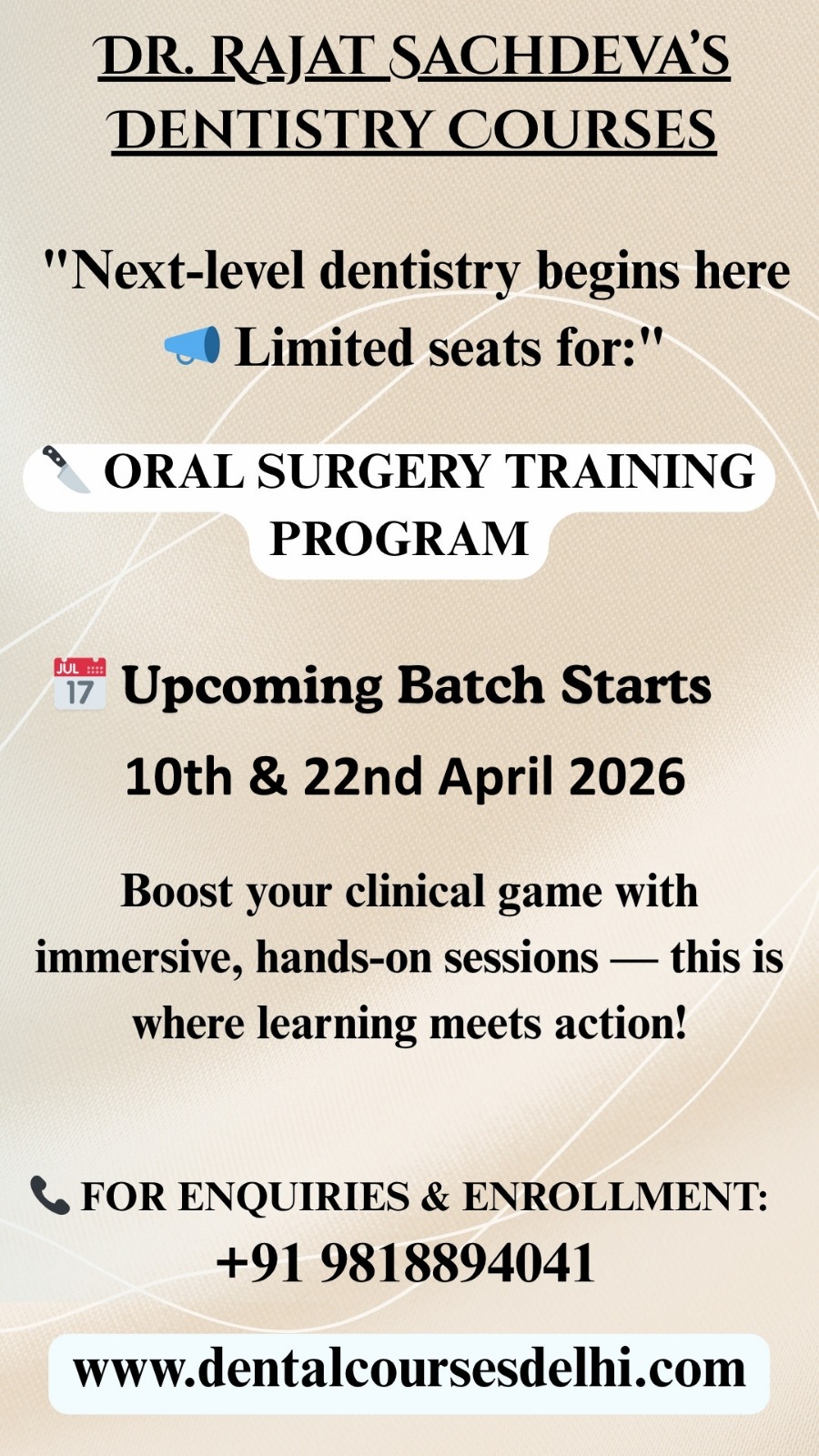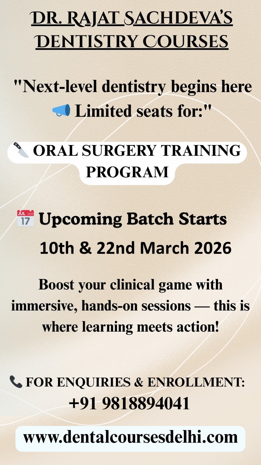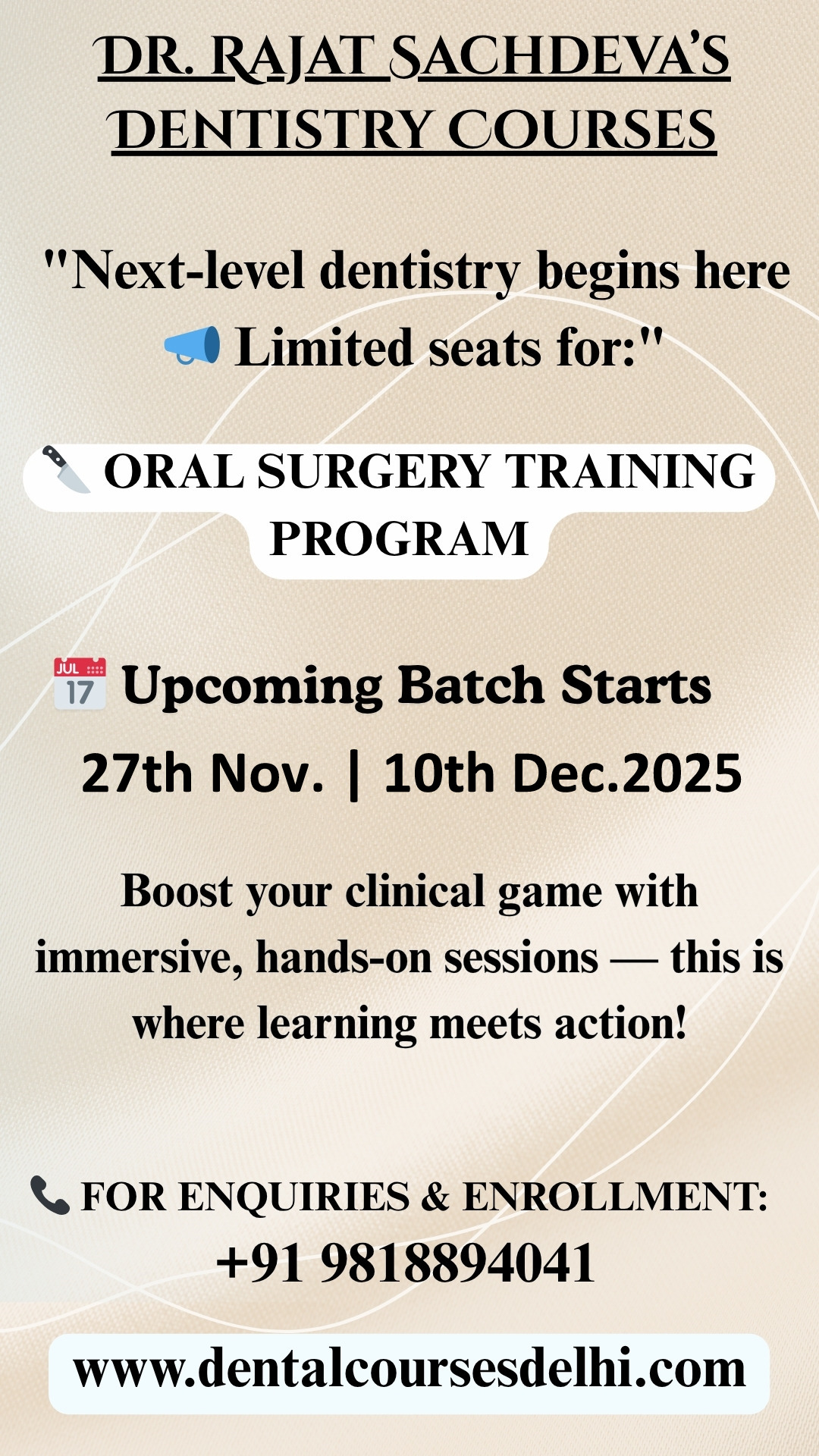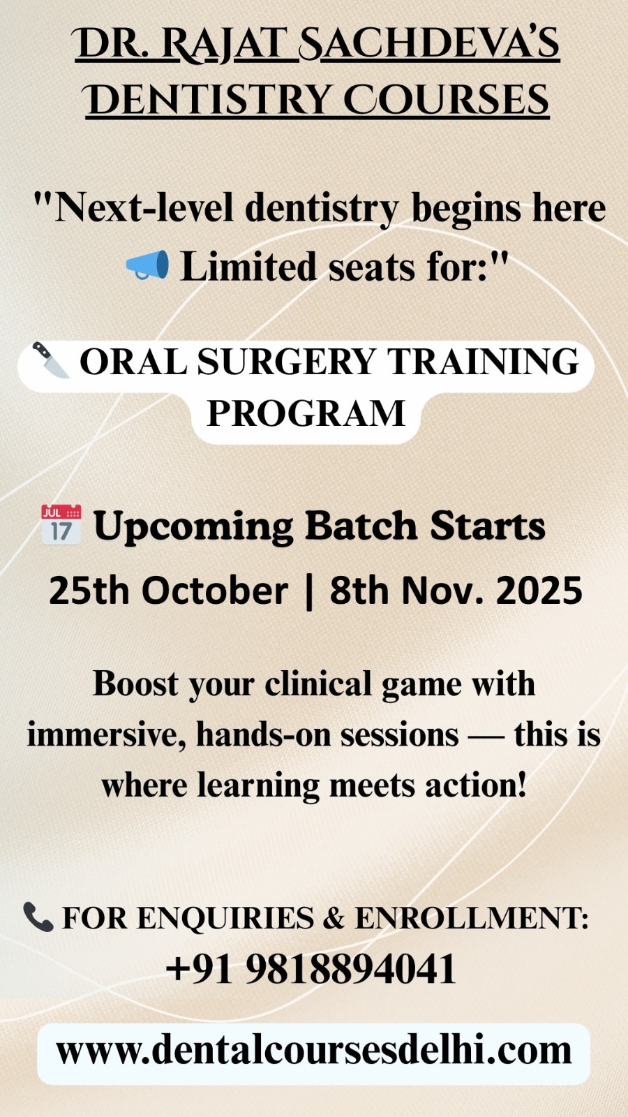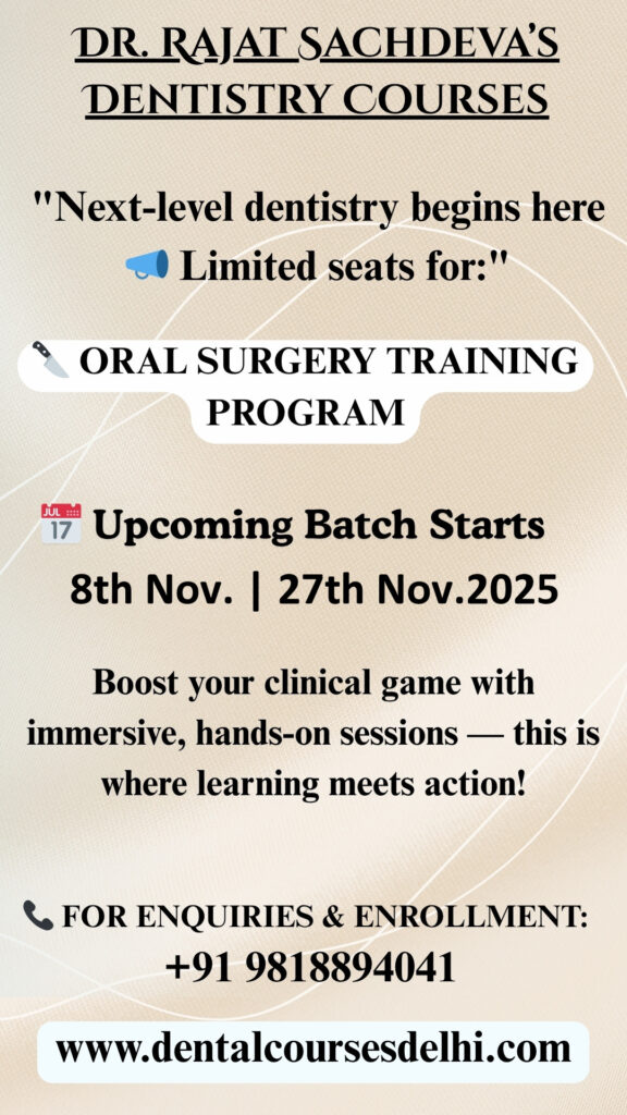 Dr. Rajat Sachdeva’s dental institute offers many courses under the blanket of oral surgery which includes implant training as well.